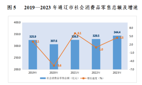 全年社會(huì)消費(fèi)品零售總額344.4億元,比上年增長(zhǎng)4.5%。按經(jīng)營(yíng)單位所在地分,城鎮(zhèn)消費(fèi)品零售額303.6億元,增長(zhǎng)4.5%;鄉(xiāng)村消費(fèi)品零售額40.7億元,增長(zhǎng)4.8%。按消費(fèi)類型分,商品零售額314.8億元,增長(zhǎng)3.7%;餐飲收入29.6億元,增長(zhǎng)13.5%。