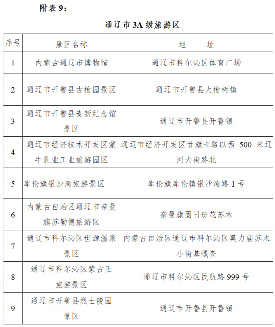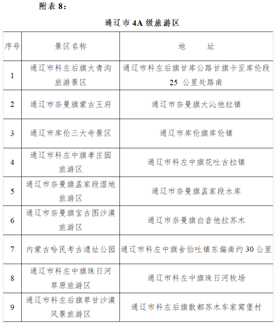 自然公園中,國(guó)家級(jí)沙漠公園2個(gè):內(nèi)蒙古奈曼寶古圖國(guó)家沙漠公園和內(nèi)蒙古庫(kù)倫銀沙灣國(guó)家沙漠公園。森林公園7個(gè),其中,國(guó)家級(jí)森林公園1個(gè):內(nèi)蒙古敖倫國(guó)家森林公園;自治區(qū)級(jí)森林公園6個(gè):內(nèi)蒙古通遼市自治區(qū)森林公園、內(nèi)蒙古科爾沁沙地自治區(qū)森林公園、內(nèi)蒙古吐?tīng)柣阶灾螀^(qū)森林公園、內(nèi)蒙古烏斯吐自治區(qū)森林公園、內(nèi)蒙古興隆沼自治區(qū)森林公園、內(nèi)蒙古罕山自治區(qū)森林公園。濕地公園4個(gè),其中,國(guó)家級(jí)濕地公園1個(gè):內(nèi)蒙古奈曼孟家段國(guó)家濕地公園;國(guó)家級(jí)濕地公園(試點(diǎn))2個(gè):內(nèi)蒙古科左后旗胡力斯臺(tái)淖爾國(guó)家濕地公園和內(nèi)蒙古霍林郭勒靜湖國(guó)家濕地公園;自治區(qū)級(jí)濕地公園1個(gè):內(nèi)蒙古自治區(qū)科爾沁濕地公園。自治區(qū)級(jí)地質(zhì)公園1個(gè):內(nèi)蒙古大青溝自治區(qū)級(jí)地質(zhì)公園。