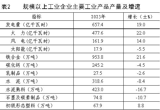 2023年,全市全部工業(yè)增加值409.7億元,比上年增長9.2%,其中,規(guī)模以上工業(yè)企業(yè)348家,增加值增長12.7%。在規(guī)模以上工業(yè)企業(yè)中,分經(jīng)濟類型看,國有及國有控股企業(yè)增加值增長4.9%,股份制企業(yè)增長14.2%,民營企業(yè)增長17%;分門類看,采礦業(yè)增加值增長35.1%,制造業(yè)增長10.4%,電力、熱力、燃氣及水生產(chǎn)供應業(yè)增長12.0%;分行業(yè)看,五大主導產(chǎn)業(yè)中電力、熱力生產(chǎn)和供應業(yè)增加值增長13.0%,黑色金屬冶煉和壓延加工業(yè)增長36.5%,化學原料和化學制品制造業(yè)下降13.4%,非金屬礦物制品業(yè)下降1.8%,農(nóng)副產(chǎn)品加工業(yè)增長12.4%。