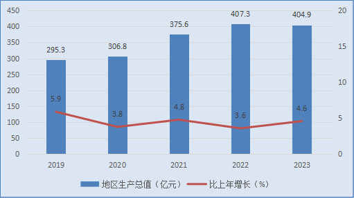 圖1 ?2019-2023年地區(qū)生產(chǎn)總值及其增長速度