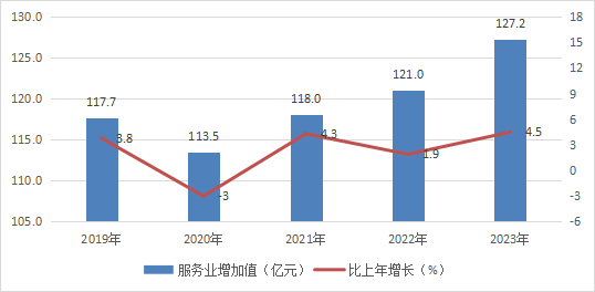 圖5 ?2019-2023年服務(wù)業(yè)增加值及其增長速度