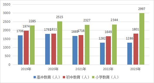 圖9 ?2019-2023年高中、初中和小學(xué)教育招生人數(shù)