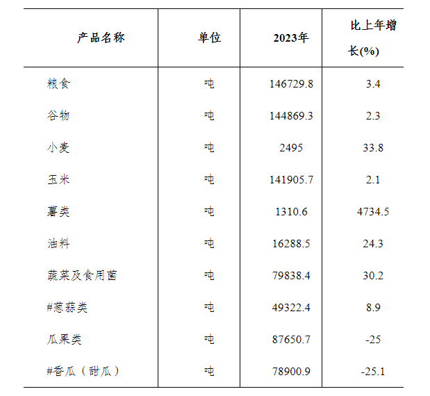 表3:2023年主要農(nóng)產(chǎn)品產(chǎn)量