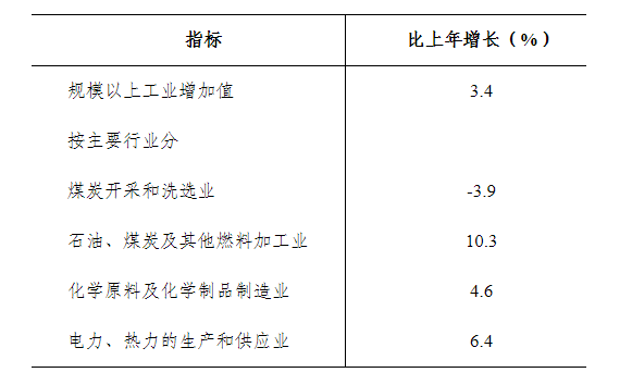 全年全部工業(yè)增加值比上年增長5.2%,其中,規(guī)模以上工業(yè)增加值增長3.4%。在規(guī)模以上工業(yè)中,分經(jīng)濟類型看,國有控股企業(yè)增加值下降7.7%;股份制企業(yè)增長3.3%;外商及港澳臺商投資企業(yè)下降4.3%。分門類看,采礦業(yè)增長1.9%;制造業(yè)增長4.2%;電力、熱力、燃氣及水的生產(chǎn)和供應(yīng)業(yè)增長1.4%。分輕重工業(yè)看,輕工業(yè)下降8.4%;重工業(yè)增長3.8%。