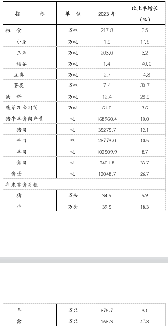 表2? 2023年主要農(nóng)產(chǎn)品產(chǎn)量及其增長(zhǎng)速度