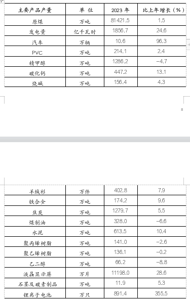 表3 2023年主要產(chǎn)品產(chǎn)量及其增長(zhǎng)速度