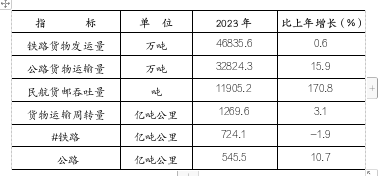 表4 2023年各種運(yùn)輸方式完成貨物運(yùn)輸量及其增長(zhǎng)速度