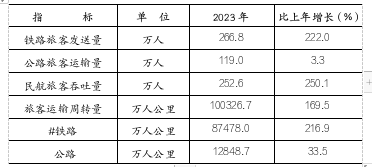 表5 2023年各種運(yùn)輸方式完成旅客運(yùn)輸量及其增長(zhǎng)速度