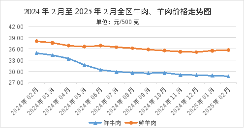 ?牛肉、去骨羊肉2月全區(qū)平均零售價格分別為每500克28.66元、35.66元。環(huán)比,去骨羊肉價格略漲0.56%,牛肉價格略降0.59%。同比牛肉、去骨羊肉價格分別下降17.88%、6.26%。