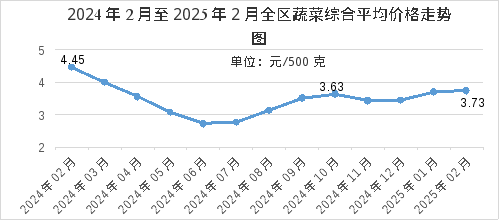 ?2月份,全區(qū)蔬菜綜合平均零售價格為3.73元/500克,環(huán)比上漲1.08%。監(jiān)測的15種蔬菜品種價格10漲5降,上漲幅度較大的品種為大白菜、西紅柿、豆角、圓白菜、韭菜,分別上漲7.56%、6.60%、5.31%、4.14%、3.90%。同比,15個蔬菜品種綜合平均零售價格下降16.18%。