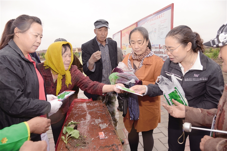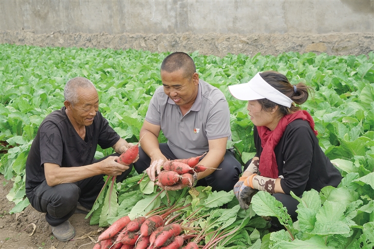 集寧區(qū)馬蓮渠鄉(xiāng)霸王河村黨支部書(shū)記、村委會(huì)主任金雪瑞(中)在田間地頭傳授種植經(jīng)驗(yàn)。