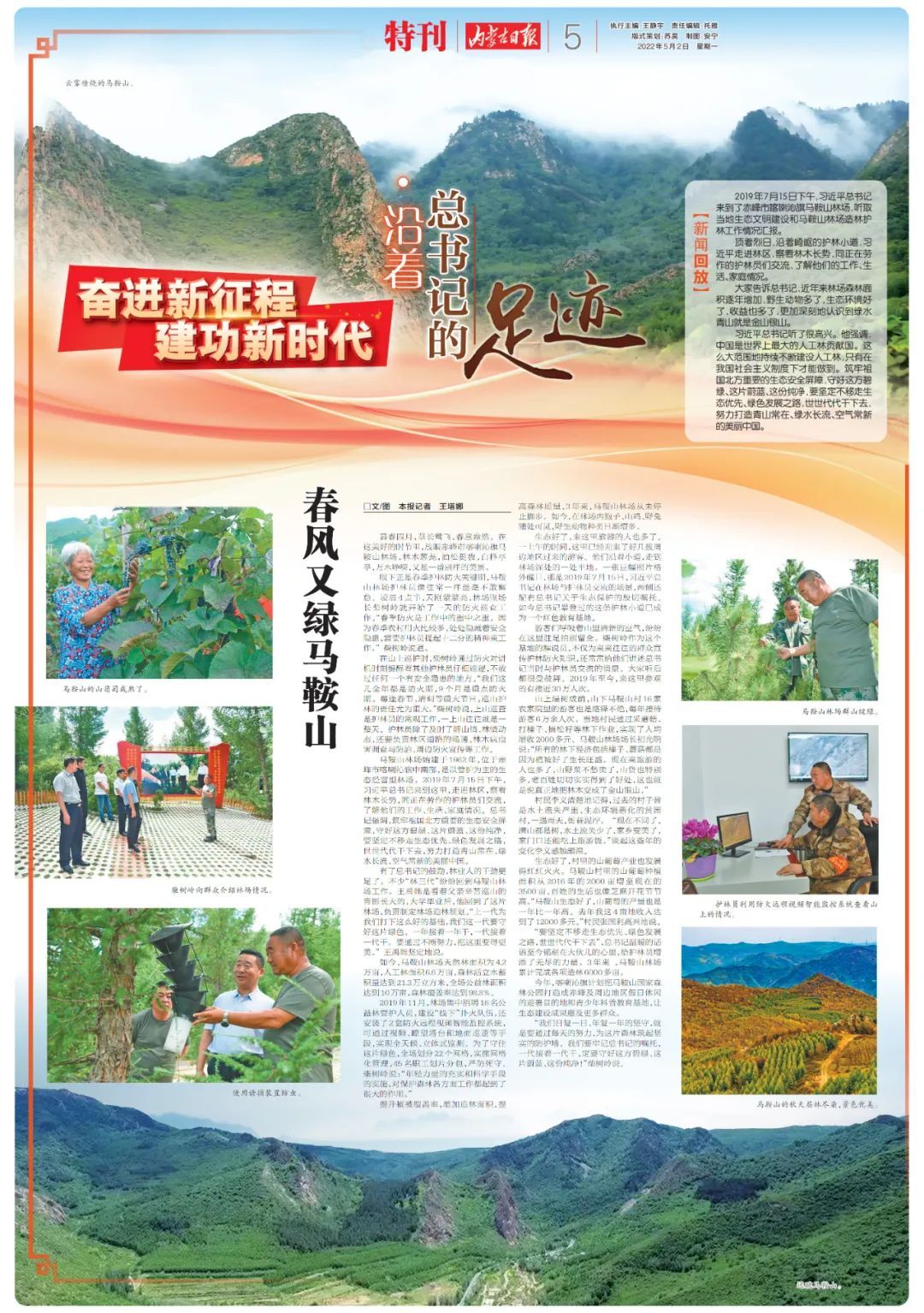 馬鞍山林場始建于1962年,位于赤峰市喀喇沁旗中南部,是以管護為主的生態(tài)經(jīng)營型林場。2019年7月15日下午,習近平總書記來到這里,走進林區(qū),察看林木長勢,同正在勞作的護林員們交流,了解他們的工作、生活、家庭情況。總書記強調(diào),筑牢祖國北方重要的生態(tài)安全屏障,守好這方碧綠、這片蔚藍、這份純凈,要堅定不移走生態(tài)優(yōu)先、綠色發(fā)展之路,世世代代干下去,努力打造青山常在、綠水長流、空氣常新的美麗中國。