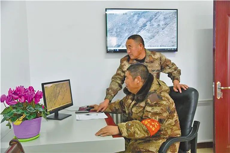 護林員利用防火遠程視頻智能監(jiān)控系統(tǒng)查看山上的情況。