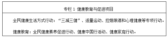 2.深入推進(jìn)全民健康素養(yǎng)促進(jìn)行動,以創(chuàng)建健康促進(jìn)旗縣為抓手,大力普及健康科學(xué)知識,教育引導(dǎo)人民群眾樹立正確的健康觀;持續(xù)開展健康家庭行動等行動,提升健康教育效果,提升居民健康素質(zhì)。到2020年和2025年,居民健康素養(yǎng)水平分別達(dá)到20%和25%,重點慢性病核心知識知曉率分別達(dá)到60%和70%。