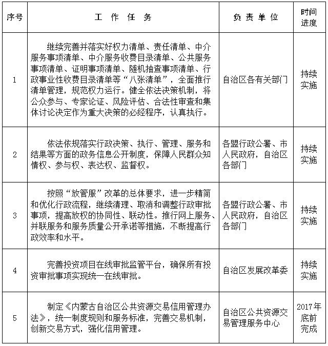 5.進(jìn)一步規(guī)范公共資源交易活動(dòng)。制定《內(nèi)蒙古自治區(qū)公共資源交易信用管理辦法》,統(tǒng)一制度規(guī)則和服務(wù)標(biāo)準(zhǔn),完善交易機(jī)制,創(chuàng)新交易方式,強(qiáng)化信用管理。