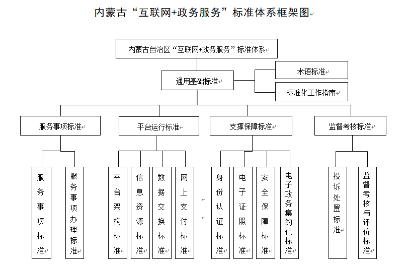圍繞“互聯(lián)網(wǎng)+政務(wù)服務(wù)”平臺,即:政務(wù)服務(wù)門戶網(wǎng)站、政務(wù)服務(wù)管理平臺、業(yè)務(wù)辦理系統(tǒng)、政務(wù)服務(wù)數(shù)據(jù)共享平臺四部分,構(gòu)建科學(xué)、合理的內(nèi)蒙古自治區(qū)“互聯(lián)網(wǎng)+政務(wù)服務(wù)”標準體系框架結(jié)構(gòu),明確自治區(qū)“互聯(lián)網(wǎng)+政務(wù)服務(wù)”標準化工作的主要范圍和重點領(lǐng)域,指導(dǎo)相關(guān)標準的制定修訂工作,促進已發(fā)布國家標準、行業(yè)標準及地方標準的貫徹實施。通過重點標準的有效實施,全面提升自治區(qū)“互聯(lián)網(wǎng)+政務(wù)服務(wù)”建設(shè)和服務(wù)的整體水平。