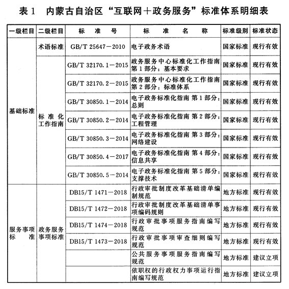 (3)簡化優(yōu)化。以滿足自治區(qū)“互聯(lián)網(wǎng)+政務(wù)服務(wù)”工作、實現(xiàn)“一網(wǎng)通辦”為目標,簡化優(yōu)化標準體系中標準數(shù)量,選擇最實用的標準納入體系,便于標準實施應(yīng)用。