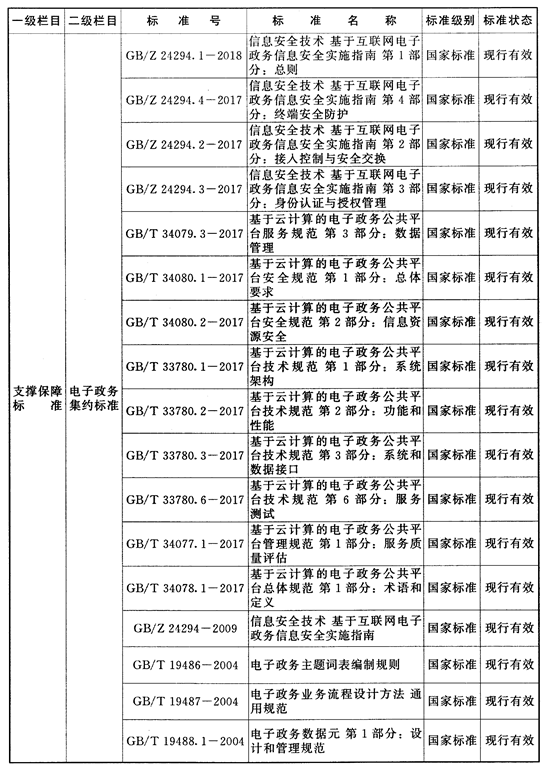 支撐保障標準主要包含身份認證標準、電子證照標準、數(shù)據(jù)安全標準、電子政務(wù)集約化標準,對中間支撐系統(tǒng)進行了規(guī)范,提升了政務(wù)服務(wù)平臺的技術(shù)保障能力。