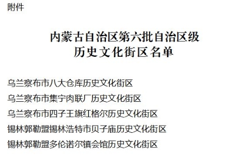 附件:內(nèi)蒙古自治區(qū)第六批自治區(qū)級(jí)歷史文化街區(qū)名單