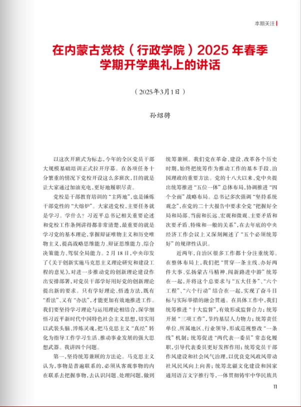 在內(nèi)蒙古黨校(行政學(xué)院)2025年春季學(xué)期開學(xué)典禮上的講話