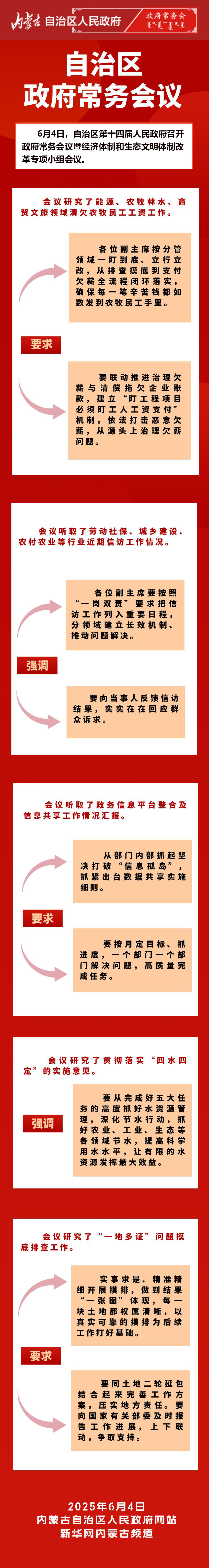 6月4日,自治區(qū)第十四屆人民政府召開(kāi)政府常務(wù)會(huì)議暨經(jīng)濟(jì)體制和生態(tài)文明體制改革專(zhuān)項(xiàng)小組會(huì)議。